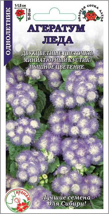 Один из самых красивых агератумов: белые с сиренево-голубой каймой цветочки, собранные в крупные ( до 8 см) пышные соцветия, практически полностью скрывают листву. Кустик миниатюрный, компактный. Цветение обильное и продолжительное. Аромат приятный, нежный. Используют для создания ковровых цветников и бордюров, высаживают в контейнеры.