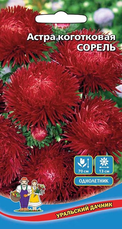 Однолетнее растение, куст прочный, колонновидной формы, высотой 60-70 см, соцветия густомахровые, крупные, диаметром 12-13 см, рубиново-красной окраски, длинные язычковые лепестки, скрученные в трубочки, придают соцветиям декоративный вид. Астры можно выращивать как рассадным способом, так и посевом семян в грунт в мае.