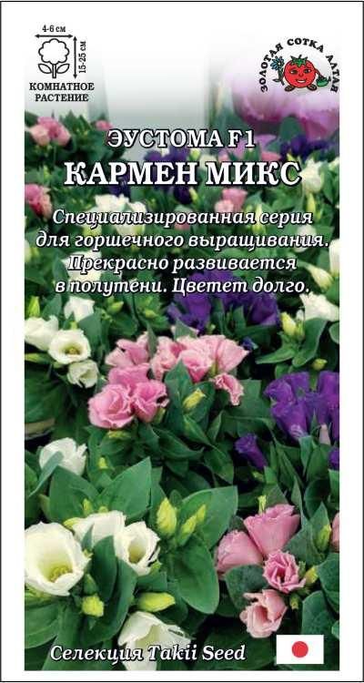 Эустомы серии «Carmen» выведены специально для выращивания в горшечной культуре, зацветают рано, цветут долго, отлично развиваются в полутени, в домашних условиях растут как многолетник. Кустик компактный, сильно ветвящийся, в период цветения весь покрыт большим количеством цветочков. В саду низкорослые эустомы используются в качестве однолетних растений для создания бордюров, клумб и рабаток.