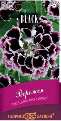 Многолетнее травянистое растение, культивируемое как однолетник. Относится к широко распространенной садовой разновидности гвоздики китайской, называемой гвоздикой Геддевига, которую часто считают отдельным видом. Образует густые, хорошо облиственные кустики, высотой 35-40 см, усыпанные махровые цветками, диаметром 4 см, необыкновенной черной окраски с белой каймой. Цветет с июля до первых заморозков. Неприхотливое, морозостойкое и светолюбивое растение. Предпочитает влажную, слегка известковую почву. Выращивают рассадным способом. Семена высевают в марте — начале апреле в горшки с песчаной почвой. Молодые растения высаживают в открытый грунт в конце апреля — мае. Гвоздика китайская хорошо смотрится группами на газоне, в цветниках, низкорослых бордюрах, вазонах и контейнерах.