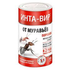 Инта-Вир убийца муравьев – высокоэффективное средство для уничтожения всех видов муравьев (домовых рыжих, садовых черных). Применяется для медико-санитарного и бытового применения в помещениях, в том числе жилых (садовые домики и т. д.), пищевых, детских (при размещении в местах недоступных для детей) и лечебных учреждениях. Препарат действует по принципу "Эпидемии": привлеченные запахом приманки рабочие муравьи берут ее частички, приняв за корм, переносят в муравейник и кормят его обитателей, в том числе и «царицу». Поглощение приманки приводит насекомых к гибели. После гибели «царицы» воспроизводство насекомых прекращается, и муравейник вымирает полностью в течение 7-12 дней.