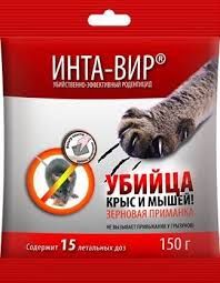 Родентицид зерновая приманка Инта Вир 150г Сз0200ИНТ13 предназначена для уничтожения крыс и мышей.