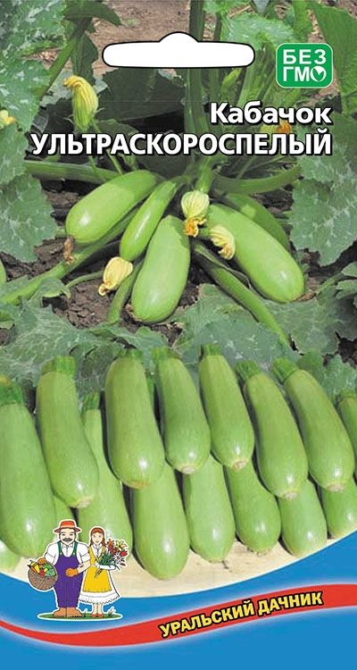 Ультраскороспелый сорт кабачка. С момента всходов до первого сбора урожая проходит 36-40 дней. Растение кустовое, преимущественно женского типа цветения. Плоды удлинённые, овально-цилиндрические с матово-зелёной кожицей и плотной нежной мякотью, длиной 18-20 см, диаметром 7-10 см. Масса в технической спелости до 0,7 кг, в биологической — до 1,3 кг. Урожайность необычайно высокая, до 12 кг/м2. Отлично перевозятся и хранятся, используются для кулинарии и консервирования, являются прекрасным диетическим продуктом.