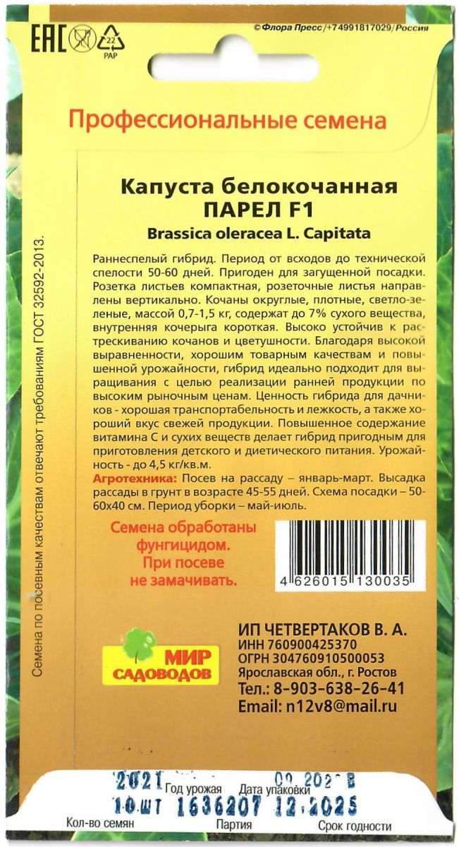 Капуста Парел б/к F1 10 шт (Мир садоводов)