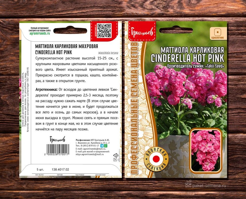 Маттиола CINDERELLA HOT PINK карликовая 5 шт (Ред.Сем.)