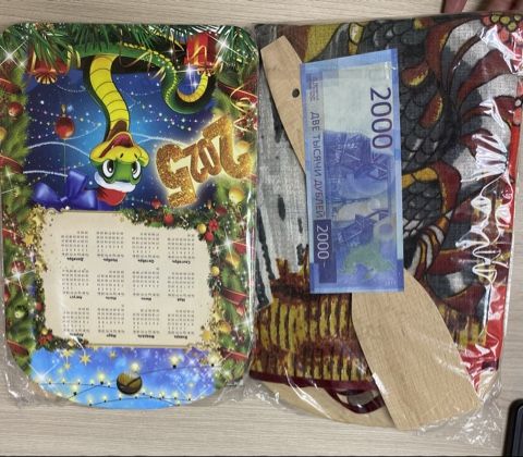 Новогодний набор 3 предмета, фартук,доска и ложка деревян