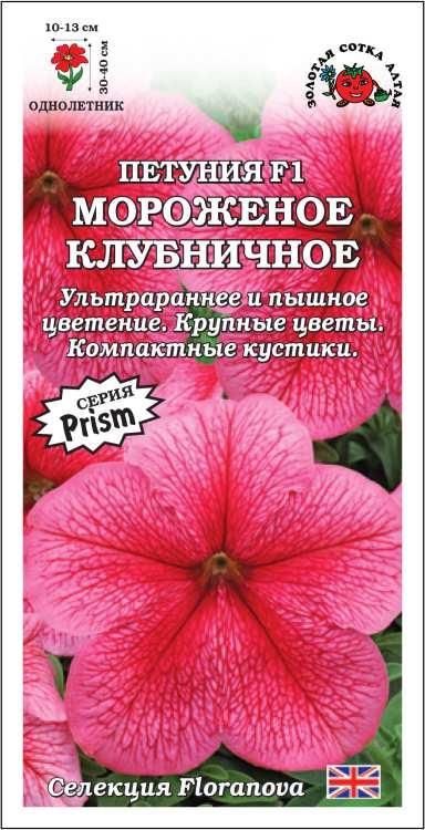 Очень раннее и обильное цветение в сочетании с естественной компактной формой куста и равномерным зацветанием гибридов позволили петуниям серии Prism завоевать мировое признание. Цветы крупные и многочисленные, красно-розовые с бордово-алым жилкованием, расходящимся от центра. Петунии отлично растут в контейнерах, используются в цветниках.