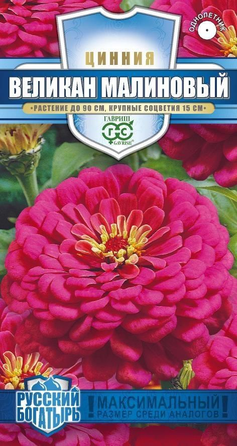 Цинния Великан Малиновый серия Русский Богатырь 0,3 г (Гавриш) Р.