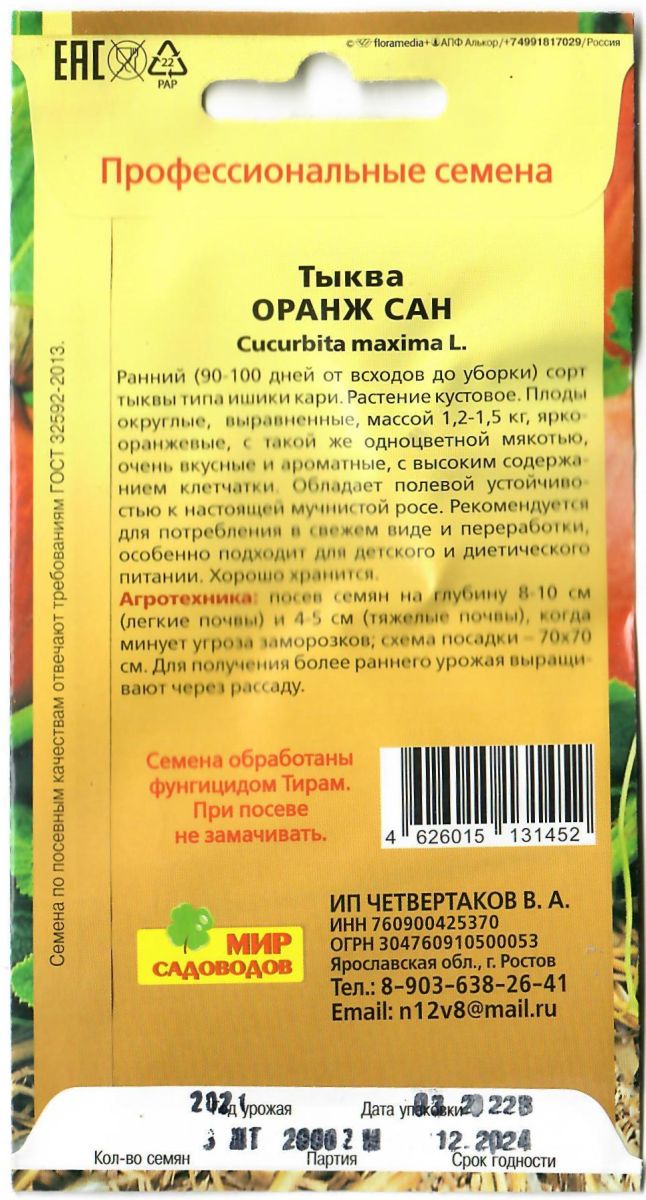Тыква Оранж Сан 3 шт (Мир садоводов)