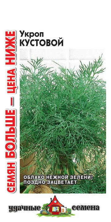 Кустовой укроп в отличие от обыкновенного имеет более густой и мощный кустик, у основания его стебля образуется 5-6 сближенных междоузлий (у обычного - 1-2), в пазухах листьев закладываются почки, из которых потом вырастают боковые побеги, которые и придают кустистую форму укропу. Кустовой укроп имеет очень крупную розетку листьев диаметром 40-50 см. Характерно, что у кустового укропа и листья, и побеги долго остаются сочными, зелеными и ароматными. Высевать кустовой укроп необходимо более просторно - через 25-30 см друг от друга, иначе куст не образуется. Урожайность зелени в открытом грунте - до 3 кг/м2, в пленочной теплице - до 5 кг/м2.
