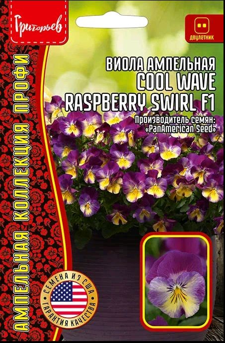Холодостойкий раннецветущий гибрид ампельной виолы. Быстро наращивает побеги, зацветает в год посева, цветение длится до глубоких заморозков. Цветки-хамелеоны различных цветов и оттенков. Выращивается в подвесных кашпо, балконных ящиках, а также в качестве почвопокровного растения. Длина плети: 60-75 см. Диаметр цветка: 4-6 см.